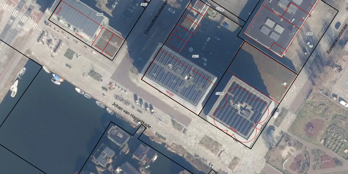 Het adres ligt op het perceel ASD07-K-9622, dat zich in de kadastrale gemeente Amsterdam bevindt. Het perceel is kleiner dan gemiddeld in Amsterdam. Het perceel is 2149 m² groot, terwijl het gemiddelde ligt op 3009,24 m². De grootste perceeloppervlakte in de kadastrale gemeente is 56,2 ha. De kleinste oppervlakte bedraagt 0 m². Op het perceel liggen in totaal 38 adressen. De laatste wijziging in het de Basisregistratie Kadaster (BRK) was op 20-02-2018.