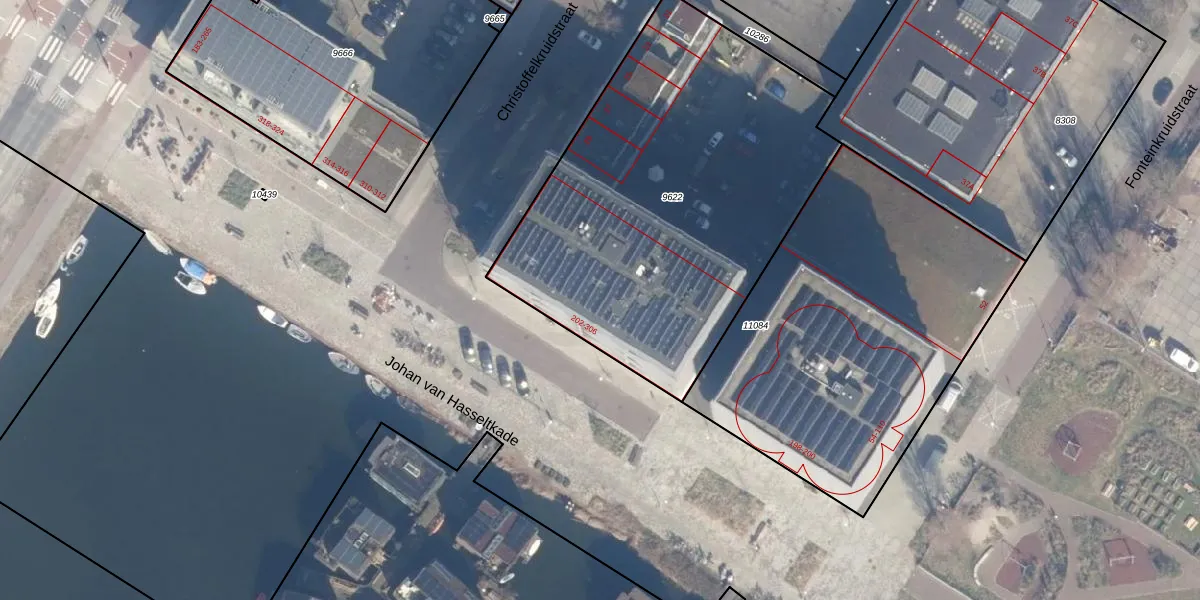 Het adres ligt op het perceel ASD07-K-9622, dat zich in de kadastrale gemeente Amsterdam bevindt. Het perceel is kleiner dan gemiddeld in Amsterdam. Het perceel is 2149 m² groot, terwijl het gemiddelde ligt op 3009,24 m². De grootste perceeloppervlakte in de kadastrale gemeente is 56,2 ha. De kleinste oppervlakte bedraagt 0 m². Op het perceel liggen in totaal 38 adressen. In de Basisregistratie Kadaster (BRK) werden de grenzen van het perceel geregistreerd op 20-02-2018.