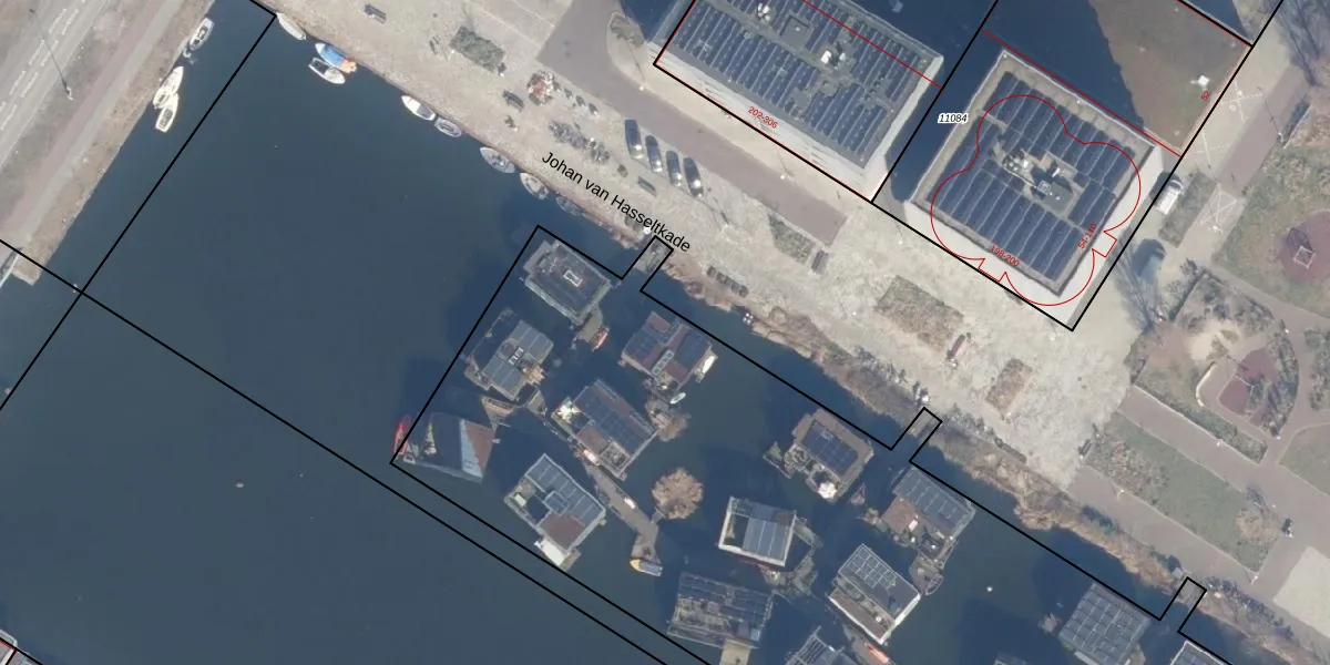 Het perceel waarop Johan van Hasseltkade 249-A staat heeft een oppervlakte van 9415 m². Dit is een zeer groot perceel. De perceeloppervlakte wordt geregistreerd door het Kadaster. Gedetailleerde informatie over de maten van dit perceel kunt u vinden in het rapport Kadastrale kaart met maatvoering van Johan van Hasseltkade 249-A.