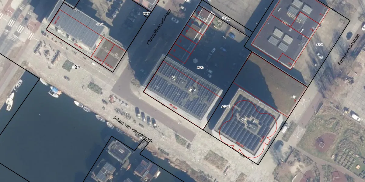 Het adres ligt op het perceel ASD07-K-9622, dat zich in de kadastrale gemeente Amsterdam bevindt. Het perceel is kleiner dan gemiddeld in Amsterdam. Het perceel is 2149 m² groot, terwijl het gemiddelde ligt op 3005,21 m². De grootste perceeloppervlakte in de kadastrale gemeente is 56,2 ha. De kleinste oppervlakte bedraagt 0 m². Er zijn 38 adressen aanwezig op het perceel. In de Basisregistratie Kadaster (BRK) werden de grenzen van het perceel geregistreerd op 20-02-2018.