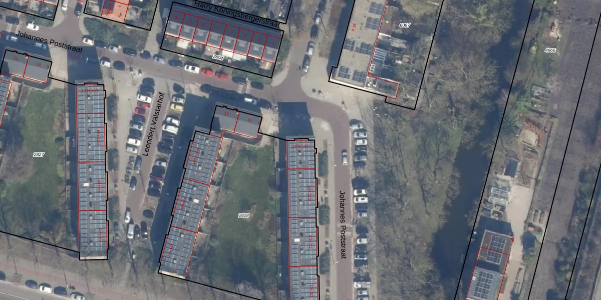 Het perceel waarop Johannes Poststraat 13-H staat heeft een oppervlakte van 2669 m². Dit is een zeer groot perceel. De perceeloppervlakte wordt geregistreerd door het Kadaster. Gedetailleerde informatie over de maten van dit perceel kunt u vinden in het rapport Kadastrale kaart met maatvoering van Johannes Poststraat 13-H.