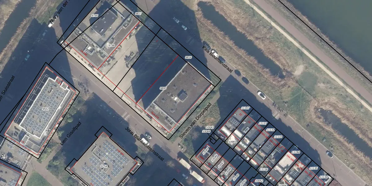 Het perceel waarop John Blankensteinstraat 33-F staat heeft een oppervlakte van 1565 m². Dit is een zeer groot perceel. De perceeloppervlakte wordt geregistreerd door het Kadaster. Gedetailleerde informatie over de maten van dit perceel kunt u vinden in het rapport Kadastrale kaart met maatvoering van John Blankensteinstraat 33-F.