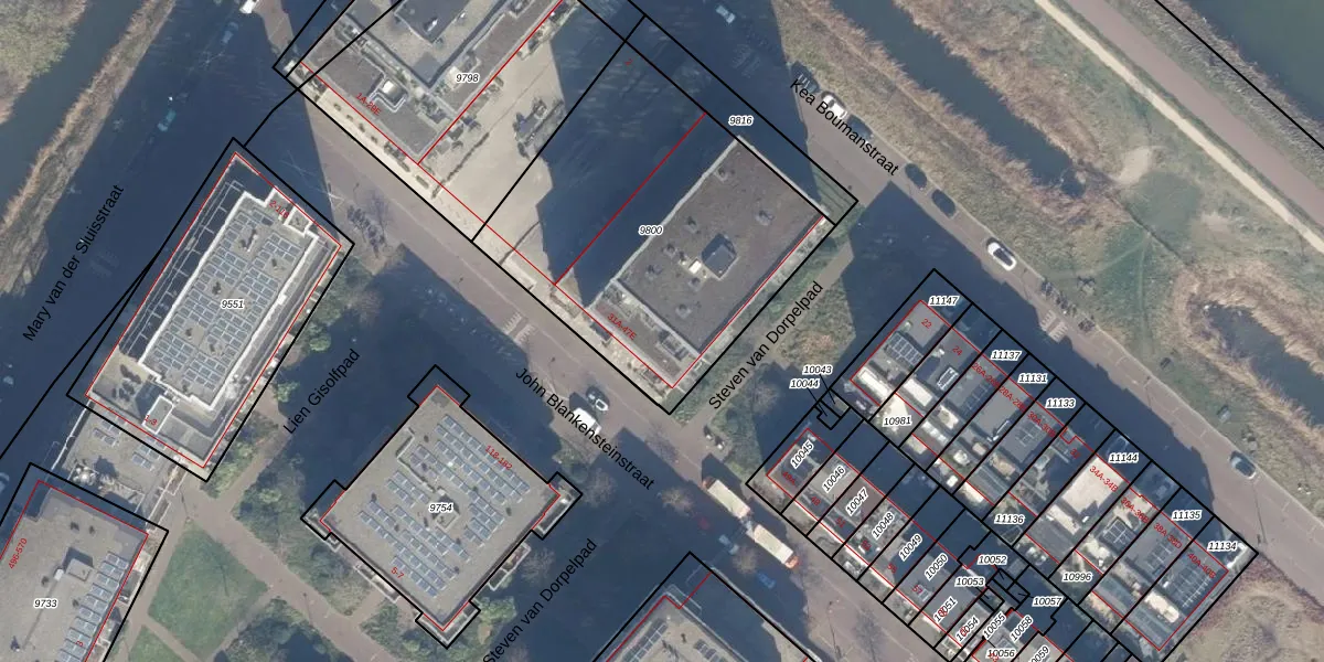 Het perceel waarop John Blankensteinstraat 33-H staat heeft een oppervlakte van 1565 m². Dit is een zeer groot perceel. De perceeloppervlakte wordt geregistreerd door het Kadaster. Gedetailleerde informatie over de maten van dit perceel kunt u vinden in het rapport Kadastrale kaart met maatvoering van John Blankensteinstraat 33-H.
