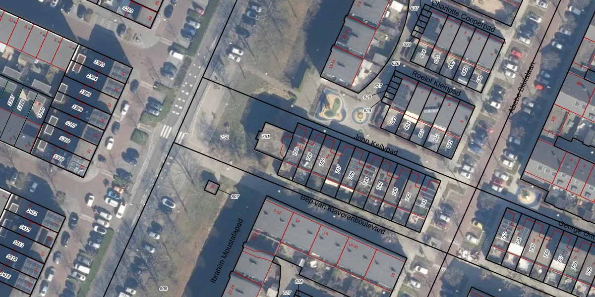 Gebruik de zoekbalk of klik op een perceel voor informatie over de adressen binnen dit perceel.