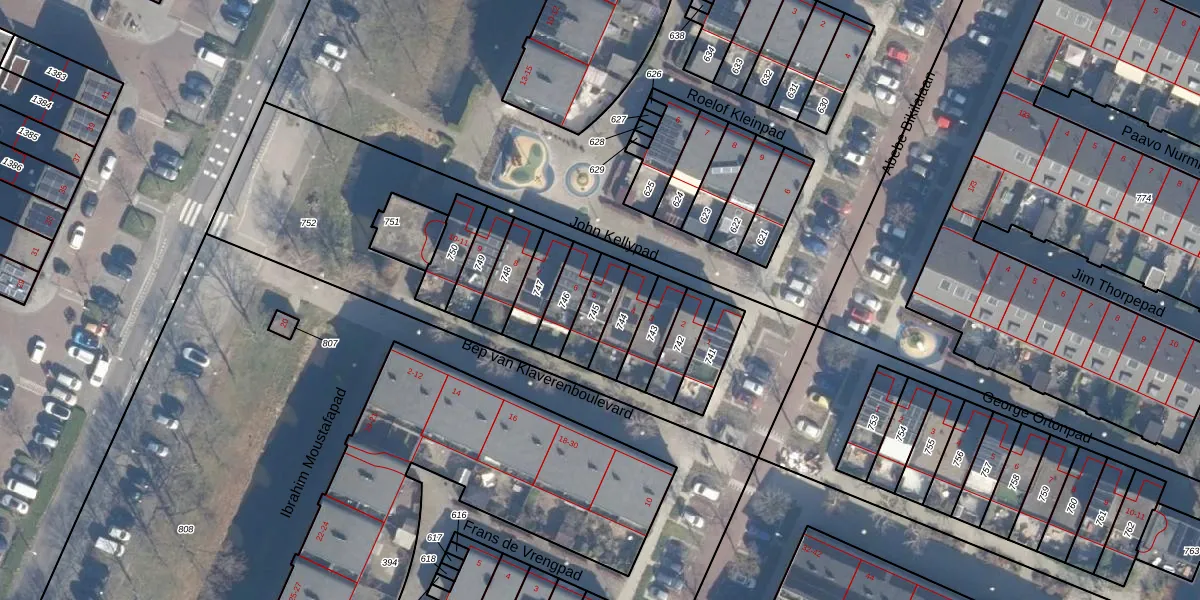 Het perceel waarop John Kellypad 5 staat heeft een oppervlakte van 95 m². Dit is een klein perceel. De perceeloppervlakte wordt geregistreerd door het Kadaster. Gedetailleerde informatie over de maten van dit perceel kunt u vinden in het rapport Kadastrale kaart met maatvoering van John Kellypad 5.
