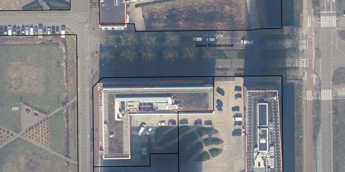 Het perceel waarop John M. Keynesplein 1 staat heeft een oppervlakte van 2830 m². Dit is een zeer groot perceel. De perceeloppervlakte wordt geregistreerd door het Kadaster. Gedetailleerde informatie over de maten van dit perceel kunt u vinden in het rapport Kadastrale kaart met maatvoering van John M. Keynesplein 1.