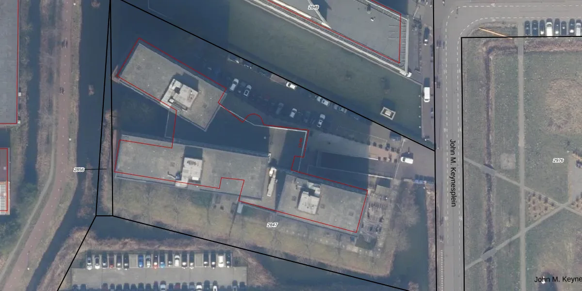 Het perceel waarop John M. Keynesplein 20 staat heeft een oppervlakte van 7017 m². Dit is een zeer groot perceel. De perceeloppervlakte wordt geregistreerd door het Kadaster. Gedetailleerde informatie over de maten van dit perceel kunt u vinden in het rapport Kadastrale kaart met maatvoering van John M. Keynesplein 20.