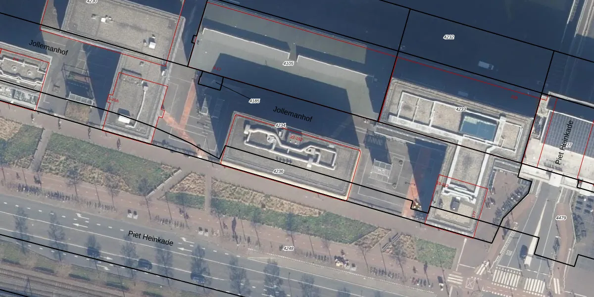 Jollemanhof 100 is gelegen op kadastraal perceel ASD10N4234. Deze kadastrale aanduiding is uniek en wordt gebruikt door het Kadaster om eigendomsrechten en andere zakelijke rechten vast te leggen. Het perceel maakt onderdeel uit van de kadastrale gemeente Amsterdam.