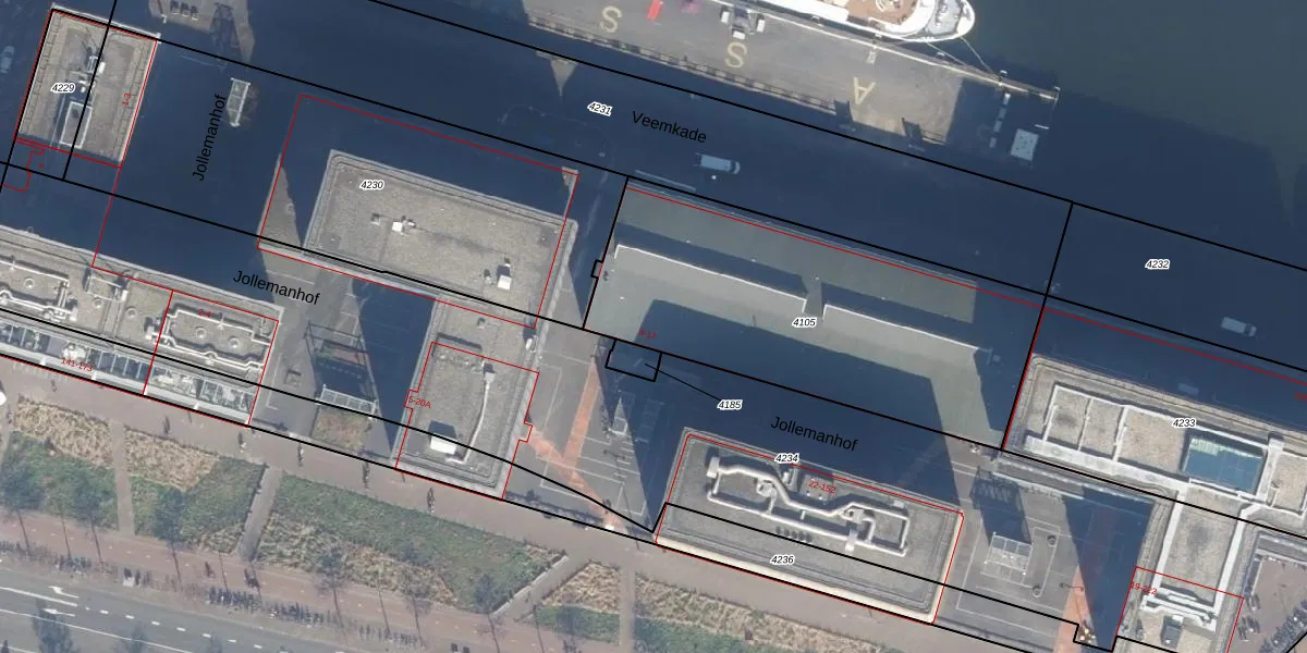 Jollemanhof 13 is gelegen op kadastraal perceel ASD10N4105. Deze kadastrale aanduiding is uniek en wordt gebruikt door het Kadaster om eigendomsrechten en andere zakelijke rechten vast te leggen. Het perceel maakt onderdeel uit van de kadastrale gemeente Amsterdam.