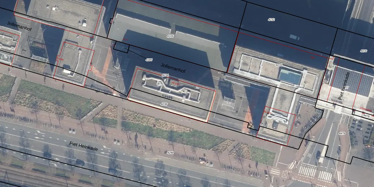 Het perceel waarop het adres ligt is ASD10-N-4234. De afkorting 'ASD10' staat voor kadastrale gemeente Amsterdam. De oppervlakte van het perceel is 4682 m². Dat is groter dan gemiddeld in Amsterdam, waar de gemiddelde perceeloppervlakte op 1949,06 m² ligt. De grootste perceeloppervlakte in de kadastrale gemeente is 17,2 ha. De kleinste oppervlakte bedraagt 0 m². Op het perceel zijn 107 adressen aanwezig. De laatste wijziging in het de Basisregistratie Kadaster (BRK) was op 11-08-2009.