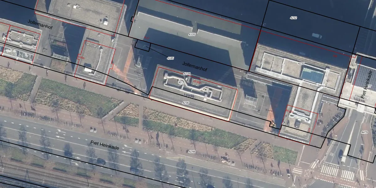 Het perceel waarop het adres ligt is ASD10-N-4234. De afkorting 'ASD10' staat voor kadastrale gemeente Amsterdam. De oppervlakte van het perceel is 4682 m². Dat is groter dan gemiddeld in Amsterdam, waar de gemiddelde perceeloppervlakte op 1949,06 m² ligt. De grootste perceeloppervlakte in de kadastrale gemeente is 17,2 ha. De kleinste oppervlakte bedraagt 0 m². Op het perceel zijn 107 adressen aanwezig. In de Basisregistratie Kadaster (BRK) werden de grenzen van het perceel geregistreerd op 11-08-2009.
