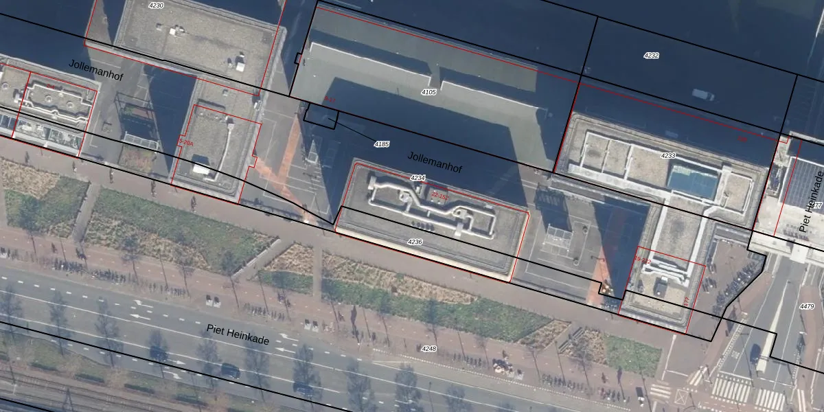 Het perceel waarop het adres ligt is ASD10-N-4234. De afkorting 'ASD10' staat voor kadastrale gemeente Amsterdam. De oppervlakte van het perceel is 4682 m². Dat is groter dan gemiddeld in Amsterdam, waar de gemiddelde perceeloppervlakte op 1949,06 m² ligt. De grootste perceeloppervlakte in de kadastrale gemeente is 17,2 ha. De kleinste oppervlakte bedraagt 0 m². Op het perceel zijn 107 adressen aanwezig. De huidige grenzen van het perceel zijn digitaal in de Basisregistratie Kadaster (BRK) geregistreerd op 11-08-2009.