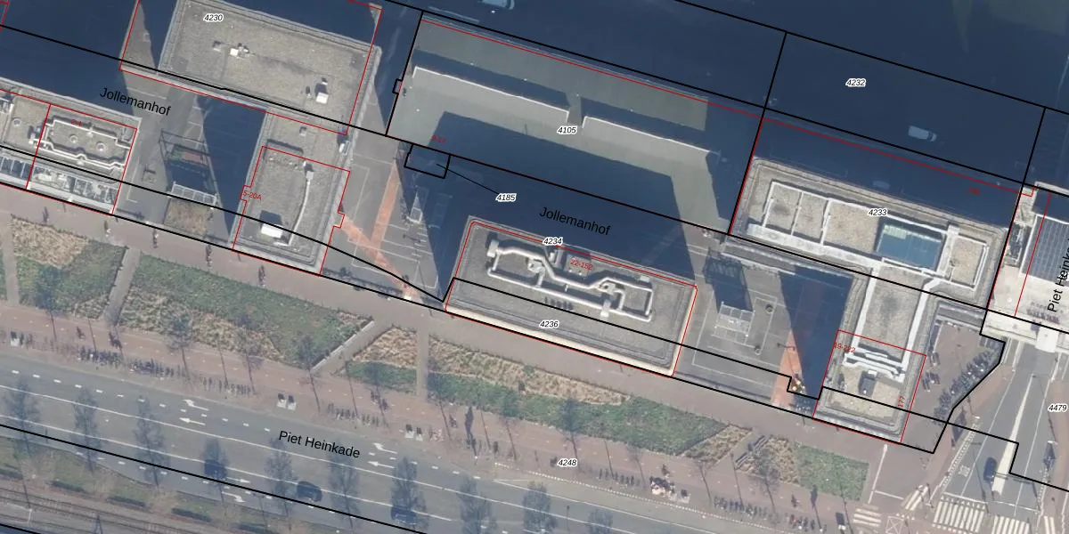 Het perceel waarop het adres ligt is ASD10-N-4234. De afkorting 'ASD10' staat voor kadastrale gemeente Amsterdam. De oppervlakte van het perceel is 4682 m². Dat is groter dan gemiddeld in Amsterdam, waar de gemiddelde perceeloppervlakte op 1949,06 m² ligt. Het grootste perceel in de kadastrale gemeente is 17,2 ha. Het kleinste perceel heeft een oppervlakte van 0 m². Op het perceel zijn 107 adressen aanwezig. In de Basisregistratie Kadaster (BRK) werden de grenzen van het perceel geregistreerd op 11-08-2009.