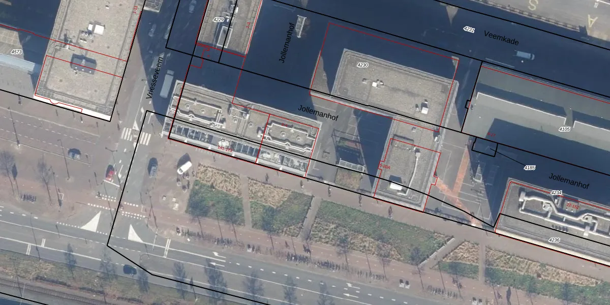 Jollemanhof 4 is gelegen op kadastraal perceel ASD10N4234. Deze kadastrale aanduiding is uniek en wordt gebruikt door het Kadaster om eigendomsrechten en andere zakelijke rechten vast te leggen. Het perceel maakt onderdeel uit van de kadastrale gemeente Amsterdam.