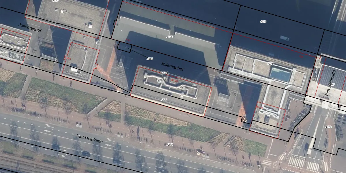 Het perceel waarop het adres ligt is ASD10-N-4234. De afkorting 'ASD10' staat voor kadastrale gemeente Amsterdam. De oppervlakte van het perceel is 4682 m². Dat is groter dan gemiddeld in Amsterdam, waar de gemiddelde perceeloppervlakte op 1949,06 m² ligt. Het grootste perceel in de kadastrale gemeente is 17,2 ha. Het kleinste perceel heeft een oppervlakte van 0 m². Op het perceel zijn 107 adressen aanwezig. De huidige grenzen van het perceel zijn digitaal in de Basisregistratie Kadaster (BRK) geregistreerd op 11-08-2009.