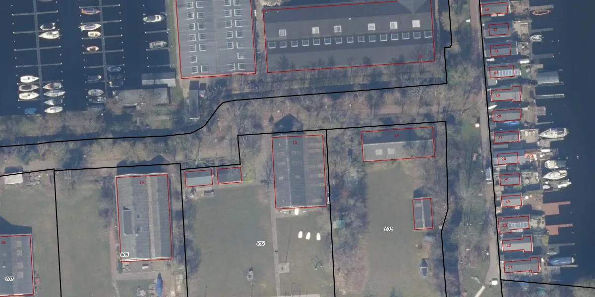 Het perceel waarop Jollenpad 15 staat heeft een oppervlakte van 3310 m². Dit is een zeer groot perceel. De perceeloppervlakte wordt geregistreerd door het Kadaster. Gedetailleerde informatie over de maten van dit perceel kunt u vinden in het rapport Kadastrale kaart met maatvoering van Jollenpad 15.