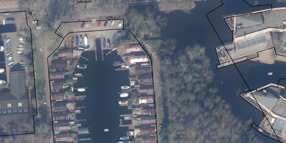 Jollenpad 40 is gelegen op kadastraal perceel ASD25AD416. Deze kadastrale aanduiding is uniek en wordt gebruikt door het Kadaster om eigendomsrechten en andere zakelijke rechten vast te leggen. Het perceel maakt onderdeel uit van de kadastrale gemeente Amsterdam.