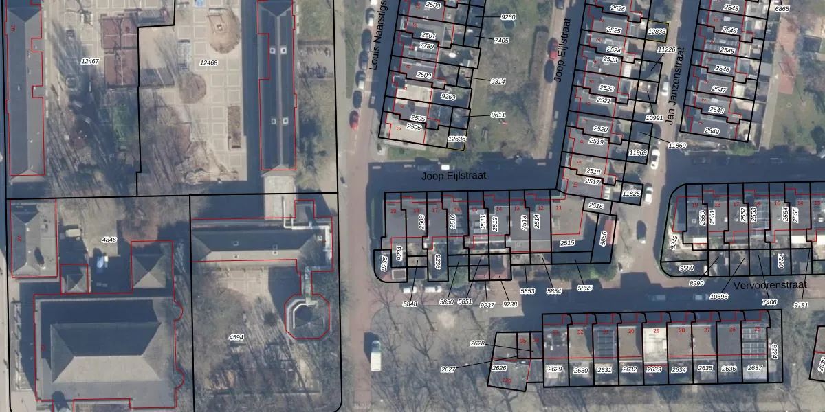 Gebruik de zoekbalk of klik op een perceel voor informatie over de adressen binnen dit perceel.