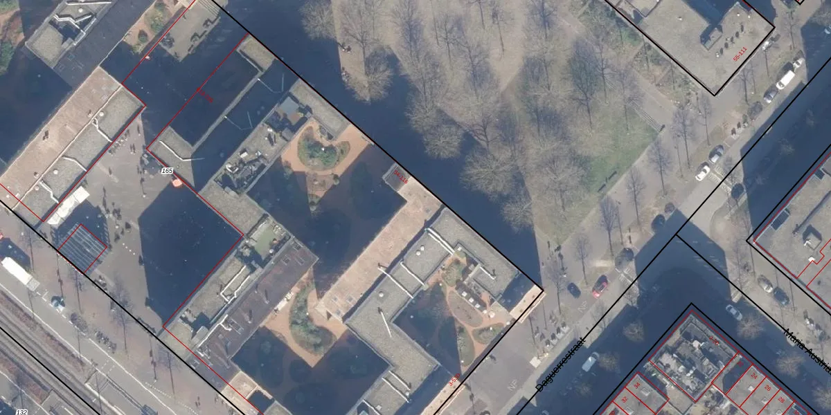 Het adres is gelegen op perceel 165 in de sectie AU en de kadastrale gemeente Amsterdam. De kadastrale aanduiding is aldus ASD41-AU-165. Het perceel is met 1,2 ha relatief groot. Het gemiddelde ligt in de kadastrale gemeente Amsterdam op 7285,32 m². De grootste perceeloppervlakte in de kadastrale gemeente is 2,75 km². De kleinste oppervlakte bedraagt 0 m². Er zijn 272 adressen aanwezig op het perceel. In de Basisregistratie Kadaster (BRK) werden de grenzen van het perceel geregistreerd op 07-12-2005.