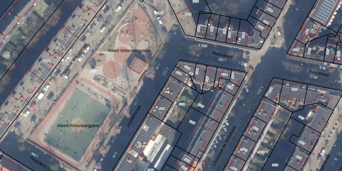 Het adres ligt op het perceel ASD19-W-5118, dat zich in de kadastrale gemeente Amsterdam bevindt. Het perceel is 382 m² groot. Dat is kleiner dan de gemiddelde perceeloppervlakte in Amsterdam, dat op 1563,05 m² ligt. Het grootste perceel in de kadastrale gemeente is 17,9 ha. Het kleinste perceel heeft een oppervlakte van 0 m². Op het perceel zijn 8 adressen aanwezig. In de Basisregistratie Kadaster (BRK) werden de grenzen van het perceel geregistreerd op 20-10-2006.