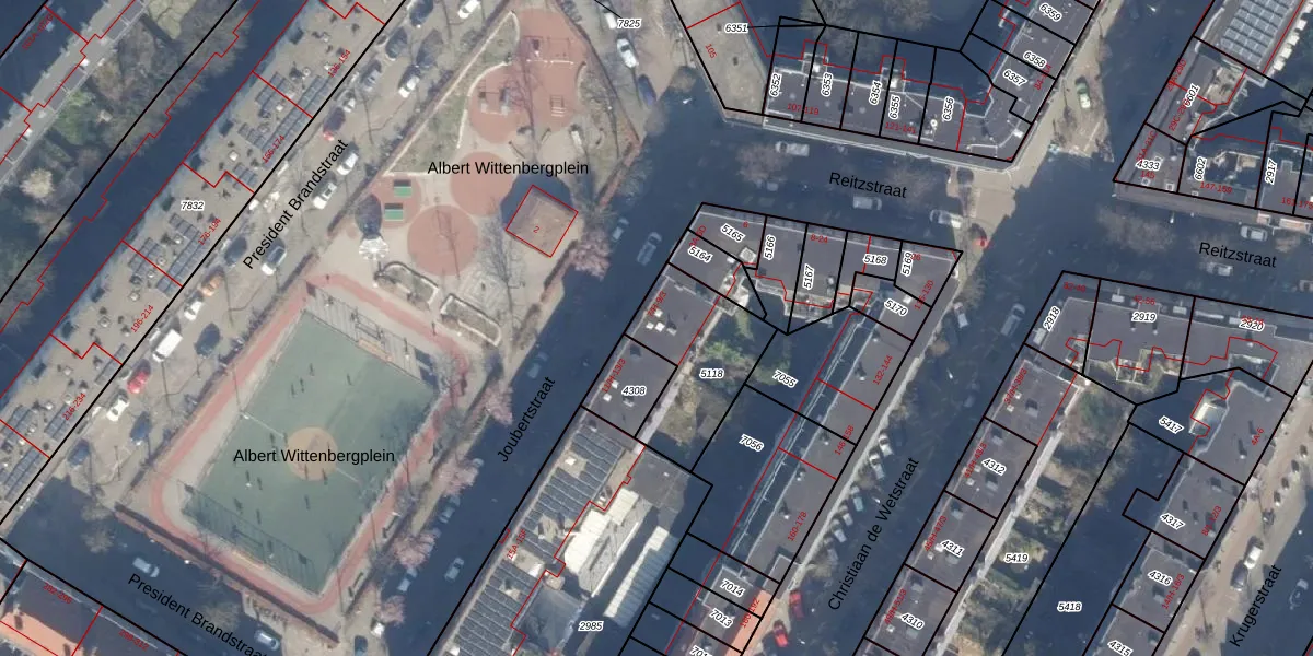 Het perceel waarop Joubertstraat 9-2 staat heeft een oppervlakte van 382 m². Dit is een groot perceel. De perceeloppervlakte wordt geregistreerd door het Kadaster. Gedetailleerde informatie over de maten van dit perceel kunt u vinden in het rapport Kadastrale kaart met maatvoering van Joubertstraat 9-2.
