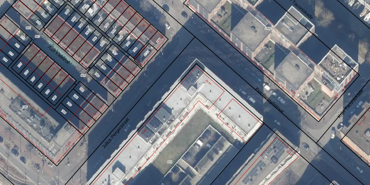 Het perceel waarop het adres ligt is ASD41-AU-631. De afkorting 'ASD41' staat voor kadastrale gemeente Amsterdam. De gemiddelde perceelgrootte in Amsterdam is 7292,22 m². Dit perceel is kleiner: de perceeloppervlakte bedraagt 4470 m². Het grootste perceel in de kadastrale gemeente is 2,75 km². Het kleinste perceel heeft een oppervlakte van 0 m². Op het perceel liggen in totaal 152 adressen. De huidige grenzen van het perceel zijn digitaal in de Basisregistratie Kadaster (BRK) geregistreerd op 26-02-2009.