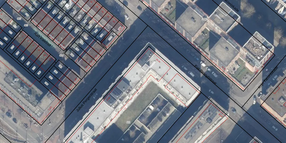 Het perceel waarop het adres ligt is ASD41-AU-631. De afkorting 'ASD41' staat voor kadastrale gemeente Amsterdam. De gemiddelde perceelgrootte in Amsterdam is 7285,32 m². Dit perceel is kleiner: de perceeloppervlakte bedraagt 4470 m². Het grootste perceel in de kadastrale gemeente is 2,75 km². Het kleinste perceel heeft een oppervlakte van 0 m². Op het perceel liggen in totaal 152 adressen. De laatste wijziging in het de Basisregistratie Kadaster (BRK) was op 26-02-2009.