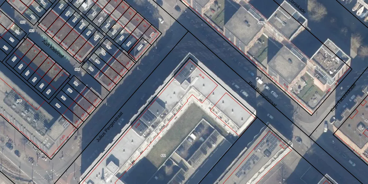 Julius Pergerstraat 242 is gelegen op kadastraal perceel ASD41AU631. Deze kadastrale aanduiding is uniek en wordt gebruikt door het Kadaster om eigendomsrechten en andere zakelijke rechten vast te leggen. Het perceel maakt onderdeel uit van de kadastrale gemeente Amsterdam.