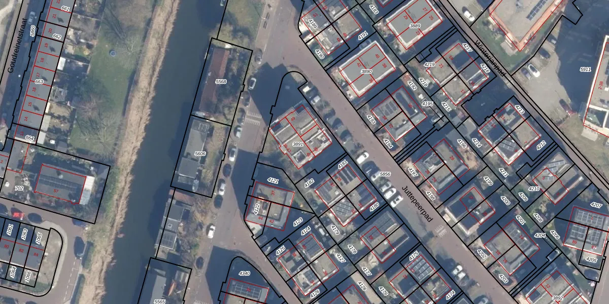 Juttepeerpad 41 is gelegen op kadastraal perceel ASD28AH3891. Deze kadastrale aanduiding is uniek en wordt gebruikt door het Kadaster om eigendomsrechten en andere zakelijke rechten vast te leggen. Het perceel maakt onderdeel uit van de kadastrale gemeente Amsterdam.