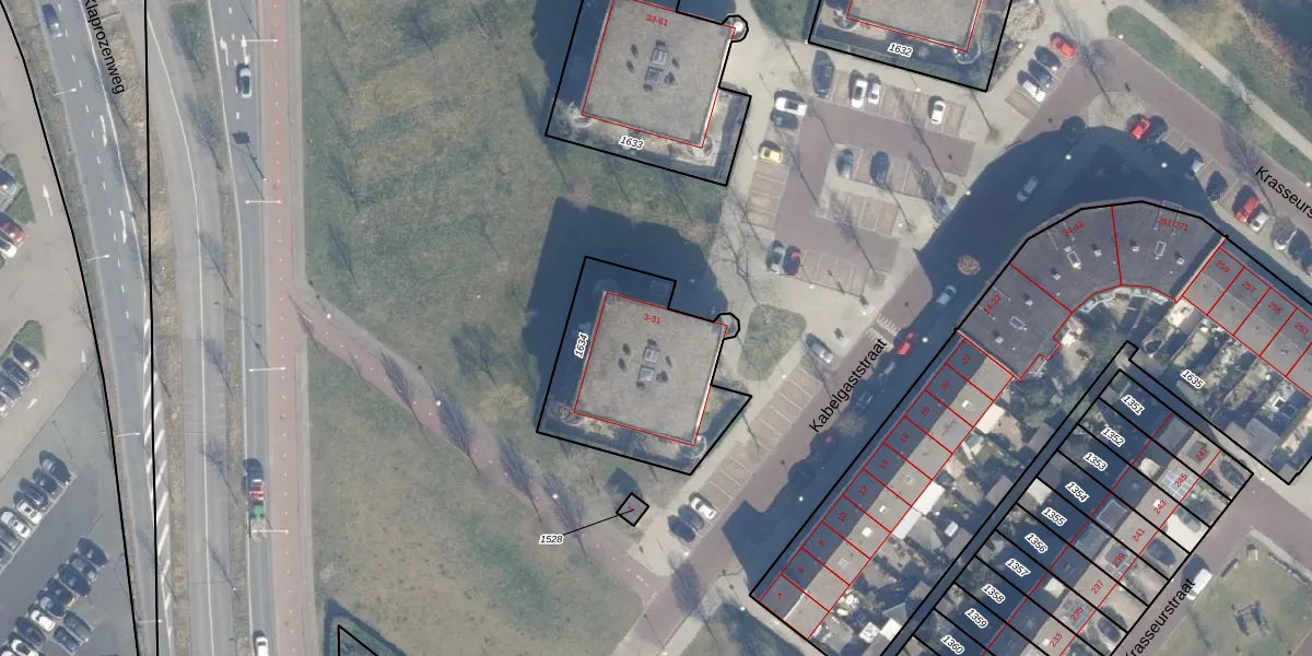 Het perceel waarop Kabelgaststraat 15 staat heeft een oppervlakte van 674 m². Dit is een groot perceel. De perceeloppervlakte wordt geregistreerd door het Kadaster. Gedetailleerde informatie over de maten van dit perceel kunt u vinden in het rapport Kadastrale kaart met maatvoering van Kabelgaststraat 15.
