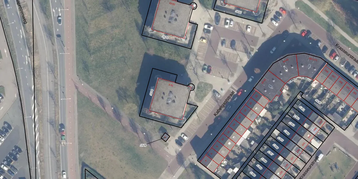 Het perceel waarop Kabelgaststraat 25 staat heeft een oppervlakte van 674 m². Dit is een groot perceel. De perceeloppervlakte wordt geregistreerd door het Kadaster. Gedetailleerde informatie over de maten van dit perceel kunt u vinden in het rapport Kadastrale kaart met maatvoering van Kabelgaststraat 25.