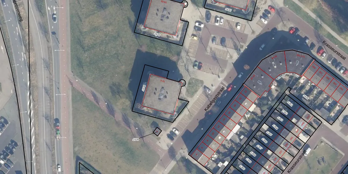 Het perceel waarop Kabelgaststraat 29 staat heeft een oppervlakte van 674 m². Dit is een groot perceel. De perceeloppervlakte wordt geregistreerd door het Kadaster. Gedetailleerde informatie over de maten van dit perceel kunt u vinden in het rapport Kadastrale kaart met maatvoering van Kabelgaststraat 29.
