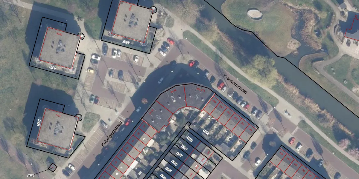 Het perceel waarop Kabelgaststraat 34 staat heeft een oppervlakte van 2551 m². Dit is een zeer groot perceel. De perceeloppervlakte wordt geregistreerd door het Kadaster. Gedetailleerde informatie over de maten van dit perceel kunt u vinden in het rapport Kadastrale kaart met maatvoering van Kabelgaststraat 34.