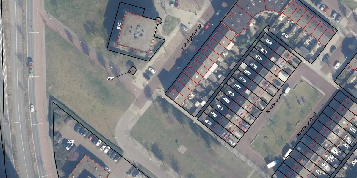 Het perceel waarop Kabelgaststraat 6 staat heeft een oppervlakte van 2551 m². Dit is een zeer groot perceel. De perceeloppervlakte wordt geregistreerd door het Kadaster. Gedetailleerde informatie over de maten van dit perceel kunt u vinden in het rapport Kadastrale kaart met maatvoering van Kabelgaststraat 6.