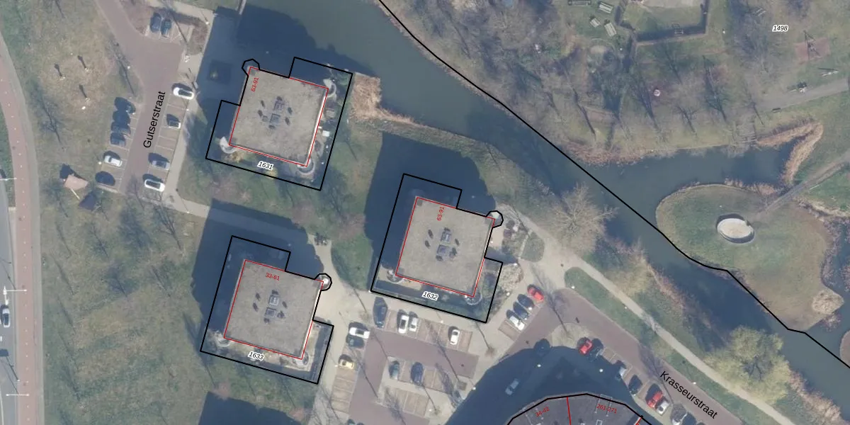 Het perceel waarop Kabelgaststraat 65 staat heeft een oppervlakte van 706 m². Dit is een groot perceel. De perceeloppervlakte wordt geregistreerd door het Kadaster. Gedetailleerde informatie over de maten van dit perceel kunt u vinden in het rapport Kadastrale kaart met maatvoering van Kabelgaststraat 65.