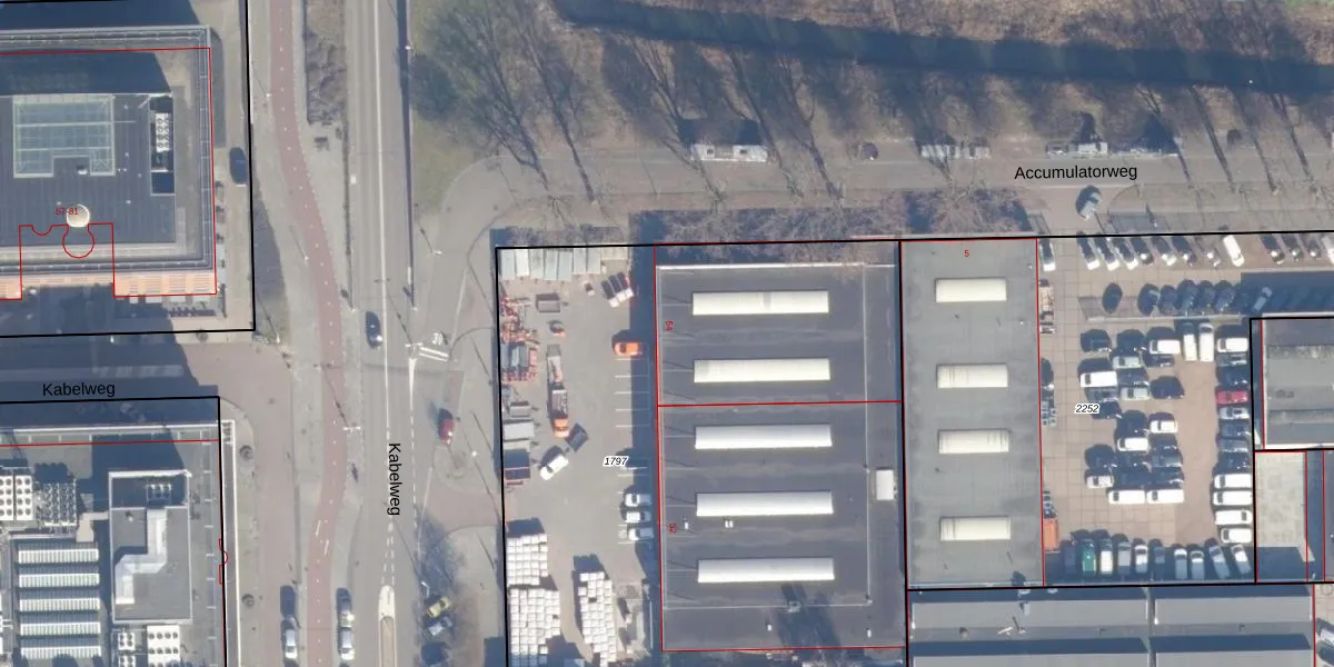 Het perceel waarop Kabelweg 54 staat heeft een oppervlakte van 3893 m². Dit is een zeer groot perceel. De perceeloppervlakte wordt geregistreerd door het Kadaster. Gedetailleerde informatie over de maten van dit perceel kunt u vinden in het rapport Kadastrale kaart met maatvoering van Kabelweg 54.