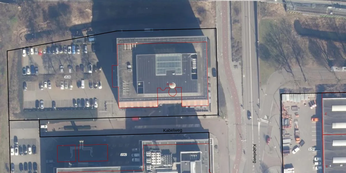 Het perceel waarop Kabelweg 69 staat heeft een oppervlakte van 5750 m². Dit is een zeer groot perceel. De perceeloppervlakte wordt geregistreerd door het Kadaster. Gedetailleerde informatie over de maten van dit perceel kunt u vinden in het rapport Kadastrale kaart met maatvoering van Kabelweg 69.