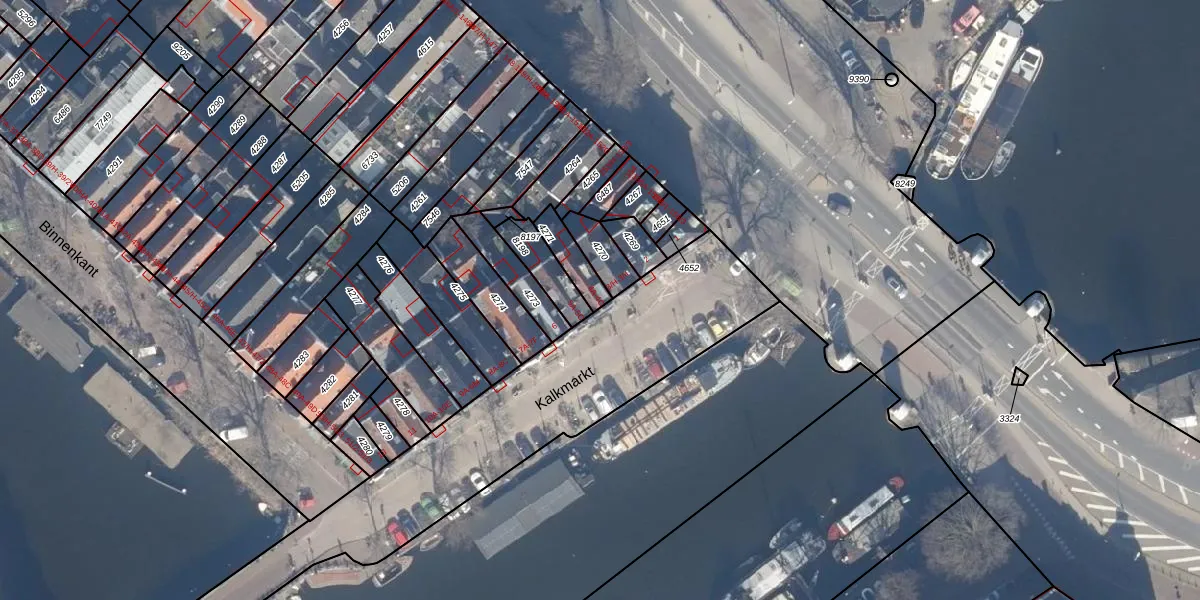 Het perceel waarop Kalkmarkt 4-B staat heeft een oppervlakte van 90 m². Dit is een klein perceel. De perceeloppervlakte wordt geregistreerd door het Kadaster. Gedetailleerde informatie over de maten van dit perceel kunt u vinden in het rapport Kadastrale kaart met maatvoering van Kalkmarkt 4-B.