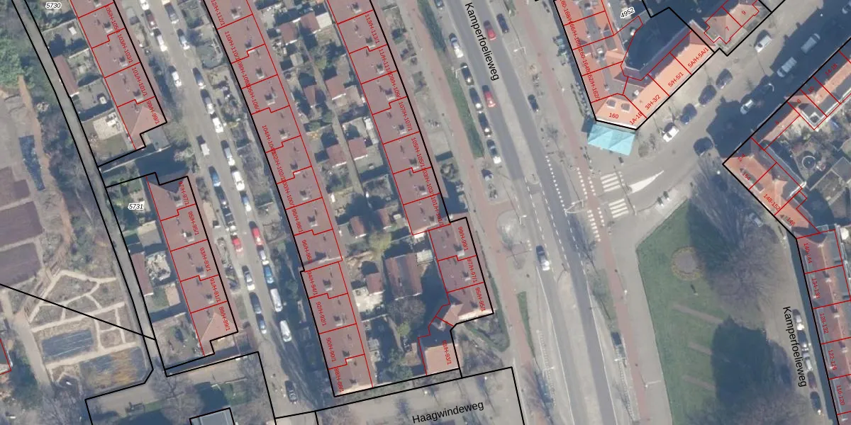 Het perceel waarop Kamperfoelieweg 101-1 staat heeft een oppervlakte van 7156 m². Dit is een zeer groot perceel. De perceeloppervlakte wordt geregistreerd door het Kadaster. Gedetailleerde informatie over de maten van dit perceel kunt u vinden in het rapport Kadastrale kaart met maatvoering van Kamperfoelieweg 101-1.