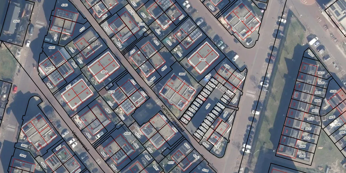 Kampervenuspad 18 is gelegen op kadastraal perceel ASD28AH3894. Deze kadastrale aanduiding is uniek en wordt gebruikt door het Kadaster om eigendomsrechten en andere zakelijke rechten vast te leggen. Het perceel maakt onderdeel uit van de kadastrale gemeente Amsterdam.