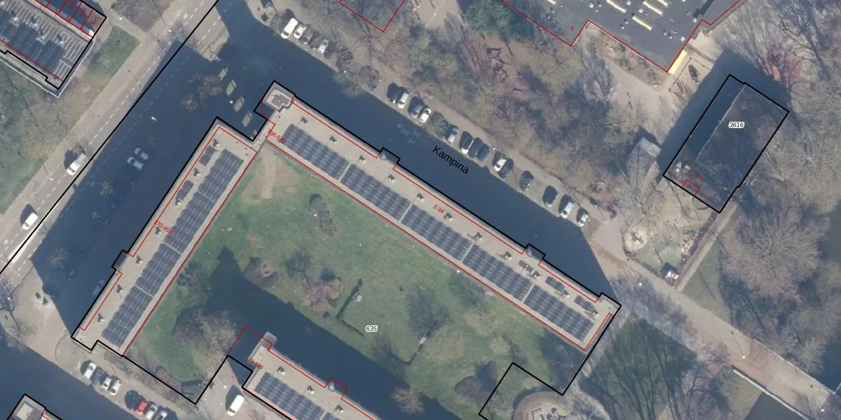 Kampina 14 is gelegen op kadastraal perceel ASD31AL635. Deze kadastrale aanduiding is uniek en wordt gebruikt door het Kadaster om eigendomsrechten en andere zakelijke rechten vast te leggen. Het perceel maakt onderdeel uit van de kadastrale gemeente Amsterdam.