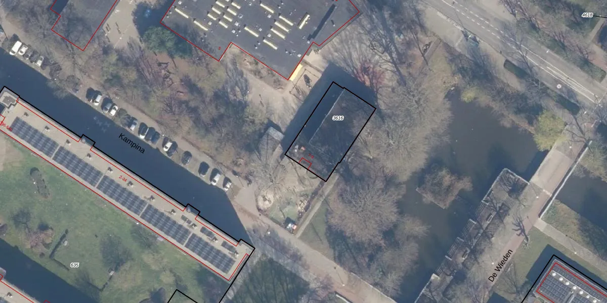 Kampina 9 is gelegen op kadastraal perceel ASD31AL3616. Deze kadastrale aanduiding is uniek en wordt gebruikt door het Kadaster om eigendomsrechten en andere zakelijke rechten vast te leggen. Het perceel maakt onderdeel uit van de kadastrale gemeente Amsterdam.