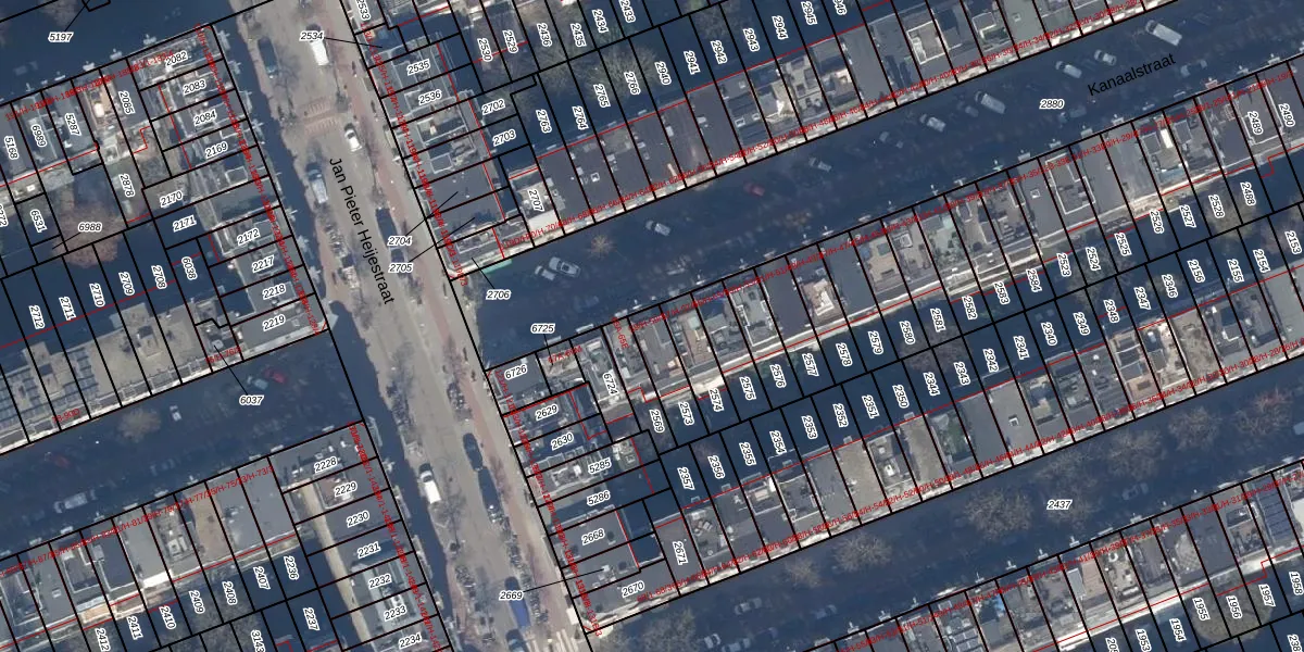 Het adres is gelegen op perceel 2573 in de sectie T en de kadastrale gemeente Amsterdam. De kadastrale aanduiding is aldus ASD16-T-2573. Het perceel is 112 m² groot. Dat is kleiner dan de gemiddelde perceeloppervlakte in Amsterdam, dat op 245,33 m² ligt. Het kleinste perceel in de kadastrale gemeente is 0 m² groot. De grootste perceeloppervlakte is 3,3 ha. Er zijn 4 adressen aanwezig op het perceel. De huidige grenzen van het perceel zijn digitaal in de Basisregistratie Kadaster (BRK) geregistreerd op 26-01-2007.