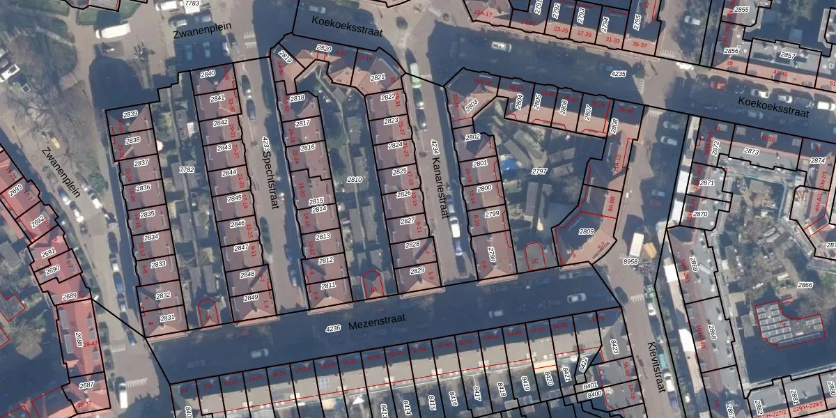 Het perceel waarop Kanariestraat 13 staat heeft een oppervlakte van 59 m². Dit is een klein perceel. De perceeloppervlakte wordt geregistreerd door het Kadaster. Gedetailleerde informatie over de maten van dit perceel kunt u vinden in het rapport Kadastrale kaart met maatvoering van Kanariestraat 13.