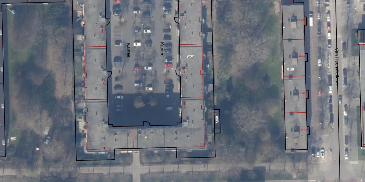 Kanteel 16 is gelegen op kadastraal perceel ASD30AK3028. Deze kadastrale aanduiding is uniek en wordt gebruikt door het Kadaster om eigendomsrechten en andere zakelijke rechten vast te leggen. Het perceel maakt onderdeel uit van de kadastrale gemeente Amsterdam.