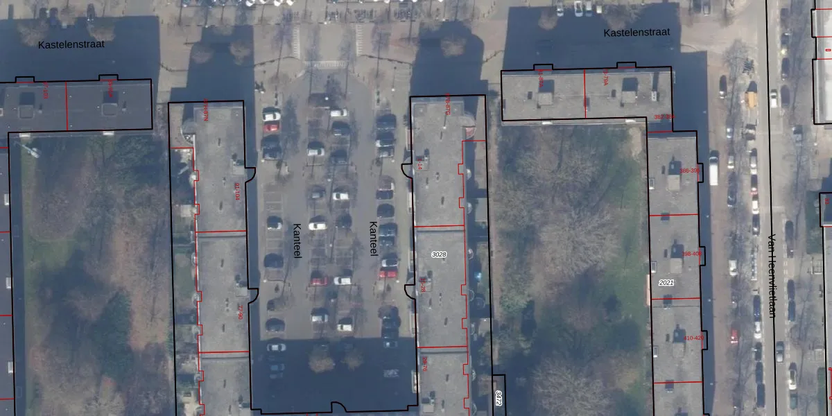 Kanteel 2 is gelegen op kadastraal perceel ASD30AK3028. Deze kadastrale aanduiding is uniek en wordt gebruikt door het Kadaster om eigendomsrechten en andere zakelijke rechten vast te leggen. Het perceel maakt onderdeel uit van de kadastrale gemeente Amsterdam.