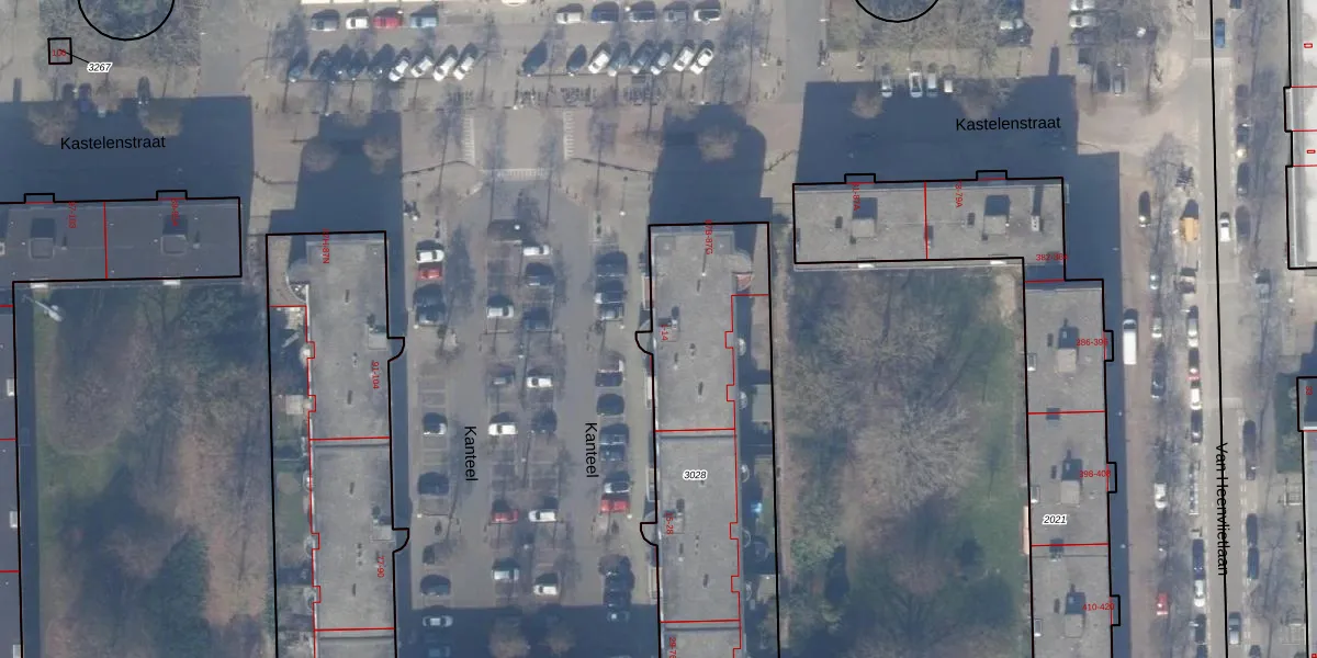 Kanteel 6 is gelegen op kadastraal perceel ASD30AK3028. Deze kadastrale aanduiding is uniek en wordt gebruikt door het Kadaster om eigendomsrechten en andere zakelijke rechten vast te leggen. Het perceel maakt onderdeel uit van de kadastrale gemeente Amsterdam.