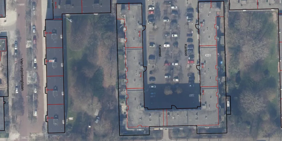 Kanteel 84 is gelegen op kadastraal perceel ASD30AK3028. Deze kadastrale aanduiding is uniek en wordt gebruikt door het Kadaster om eigendomsrechten en andere zakelijke rechten vast te leggen. Het perceel maakt onderdeel uit van de kadastrale gemeente Amsterdam.