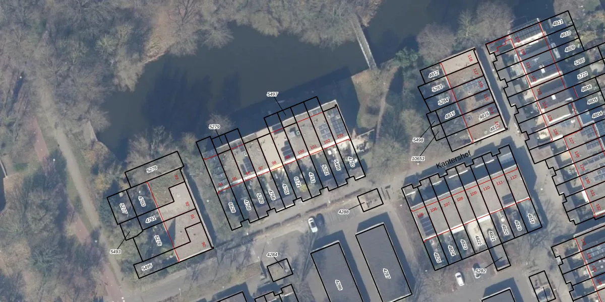 Kantershof 100 is gelegen op kadastraal perceel WPK02L4753. Deze kadastrale aanduiding is uniek en wordt gebruikt door het Kadaster om eigendomsrechten en andere zakelijke rechten vast te leggen. Het perceel maakt onderdeel uit van de kadastrale gemeente Weesperkarspel.
