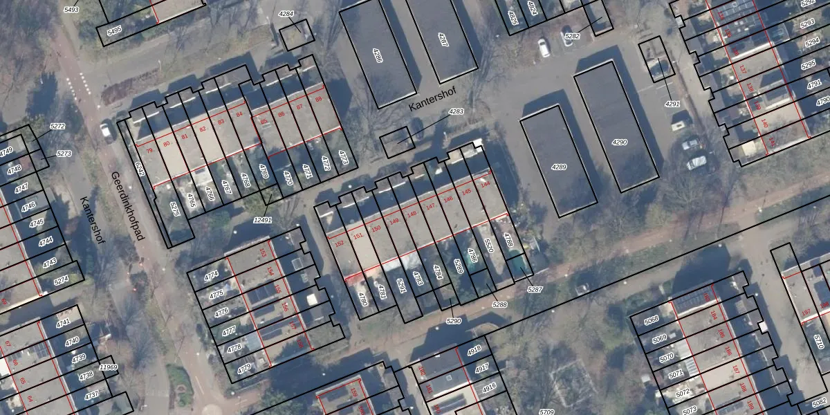 Kantershof 148 is gelegen op kadastraal perceel WPK02L4784. Deze kadastrale aanduiding is uniek en wordt gebruikt door het Kadaster om eigendomsrechten en andere zakelijke rechten vast te leggen. Het perceel maakt onderdeel uit van de kadastrale gemeente Weesperkarspel.